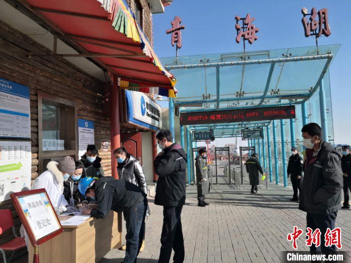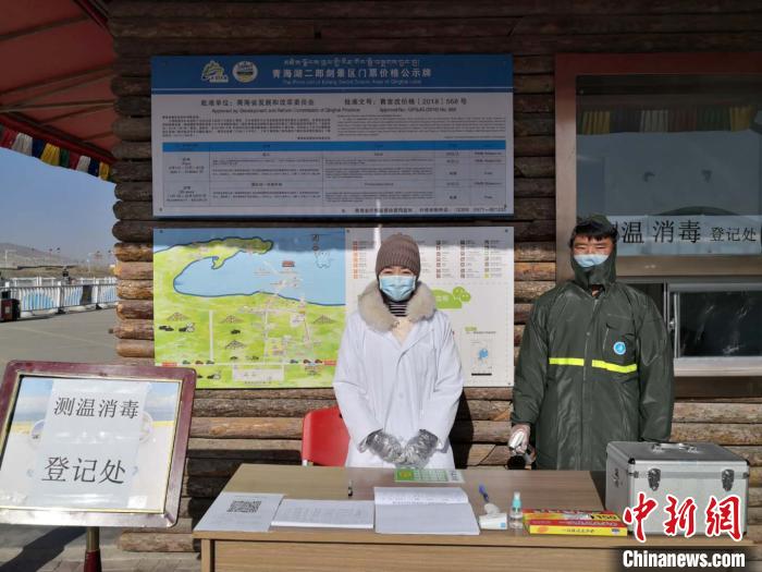 圖為青海湖景區(qū)恢復(fù)開(kāi)放當(dāng)日,相關(guān)工作人員登記進(jìn)入景區(qū)。青海湖景區(qū)保護(hù)利用管理局供圖