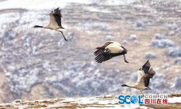 3月16日,在四川省阿壩州紅原縣安曲鎮(zhèn)的草原濕地,到處是雪茫茫的一片,從云南、貴州等地越冬歸來的一群黑頸鶴在此嬉戲覓食。它們時(shí)而逐嬉鬧,時(shí)而展翅飛翔,與周邊的牦牛、赤麻鴨相映成趣,給沉寂的高原帶來無限生機(jī)和活力。