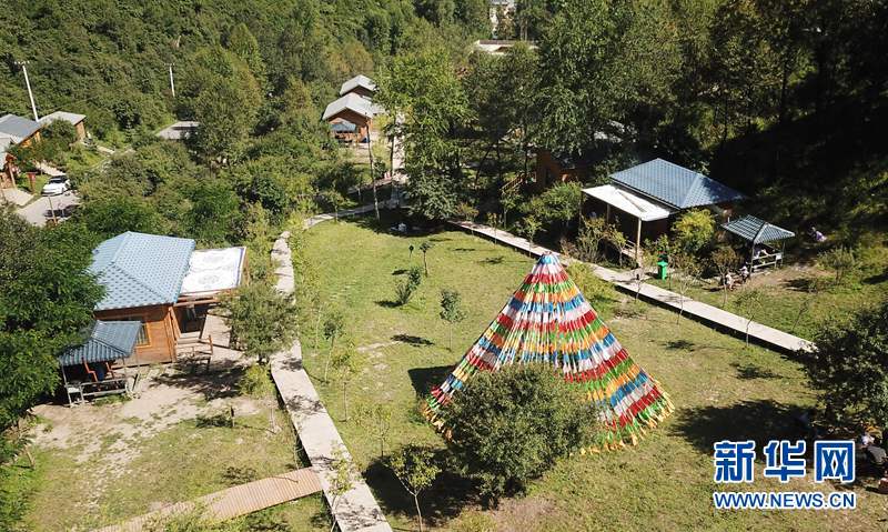 2019年8月14日無人機(jī)拍攝的甘南藏族自治州香告村一處“藏家樂”。新華社記者 陳斌 攝