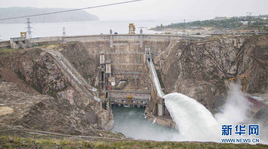 6月18日,龍羊峽水電站中孔提門(mén)泄水。 新華社 張勇 攝