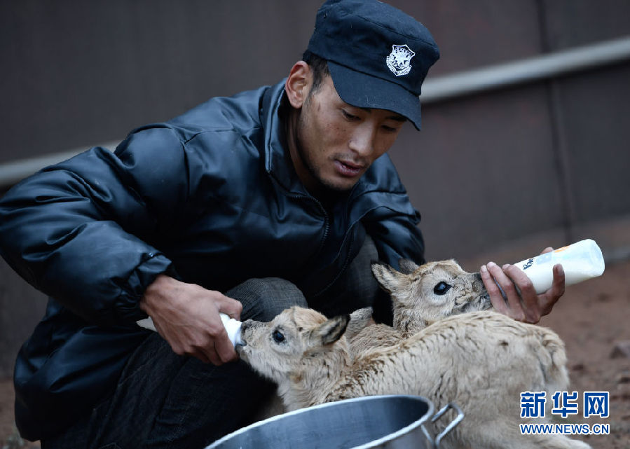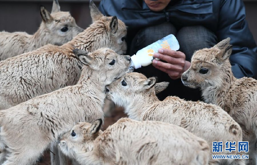 為讓11只藏羚羊幼仔盡快適應(yīng)環(huán)境、健康成長(zhǎng),卓乃湖保護(hù)站安排專(zhuān)人,在特定區(qū)域?qū)ζ溥M(jìn)行喂養(yǎng)。記者在卓乃湖保護(hù)站看到,每日早、中、晚,巡山隊(duì)員才文多杰會(huì)按時(shí)給小藏羚羊喂奶,每只小藏羚羊都有自己的“專(zhuān)用”奶瓶。