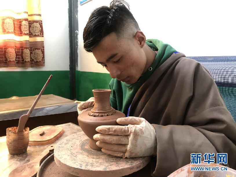 “我們村有做黑陶的傳統(tǒng),現(xiàn)在村里成立了制陶企業(yè),做黑陶成為不少家庭的主要收入來源?!庇駱渲菽抑t縣吉曲鄉(xiāng)山榮村古陶器傳承工程中心員工才角仁增說。