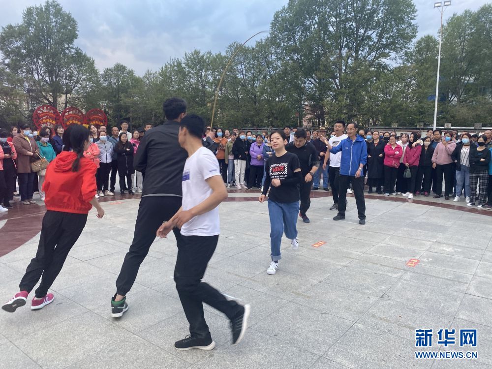 在青海省海北藏族自治州海晏縣西海鎮(zhèn)文化廣場,當(dāng)?shù)厝罕娫谂e行跳繩比賽(7月6日手機拍攝)。新華社記者 張子琪 攝