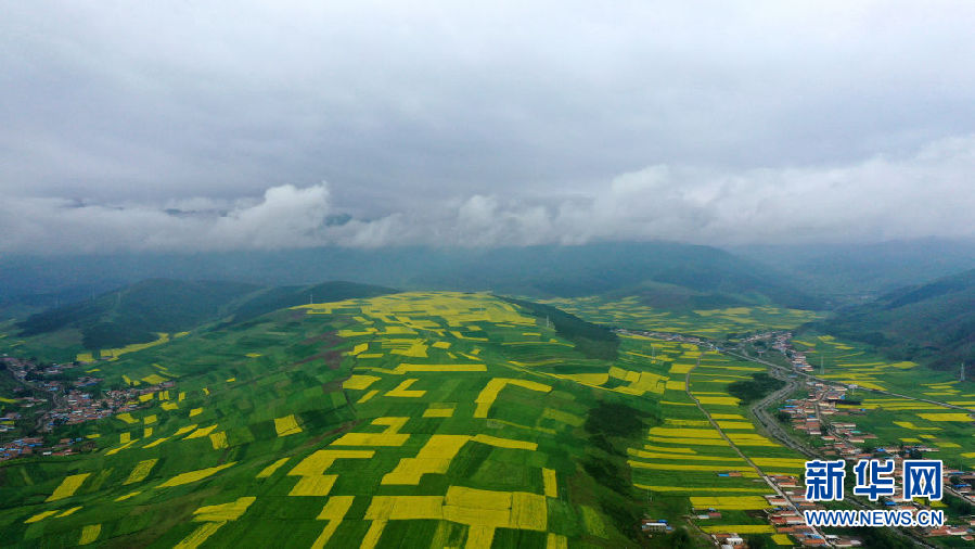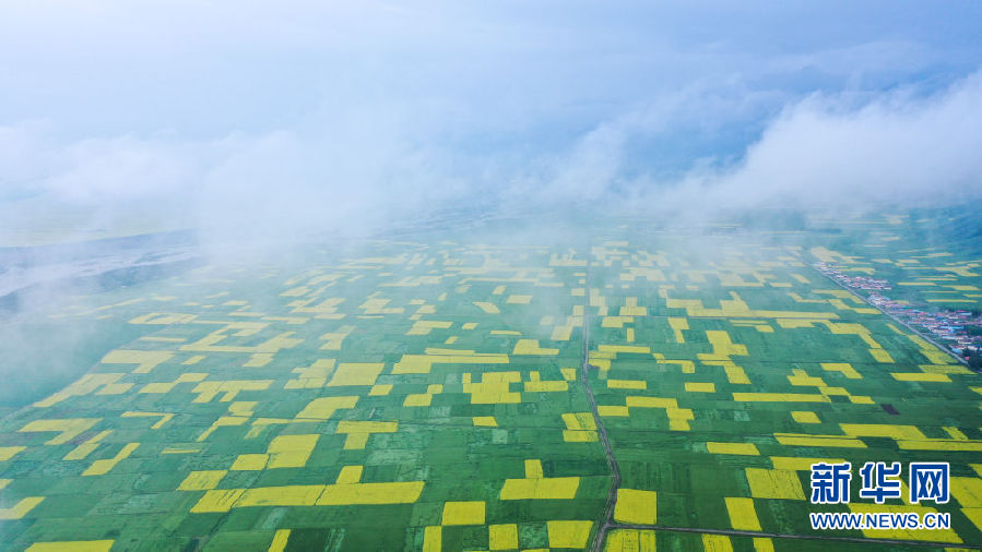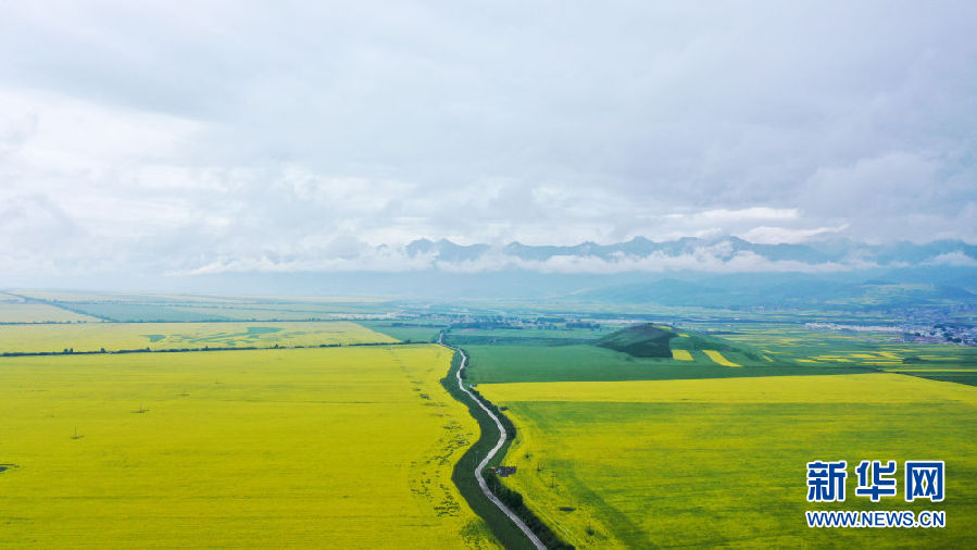 這是7月22日拍攝的門源回族自治縣的油菜花(無(wú)人機(jī)照片)。新華社記者 吳剛 攝