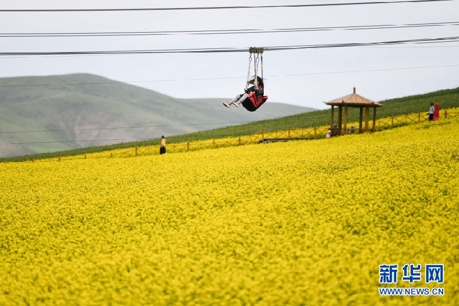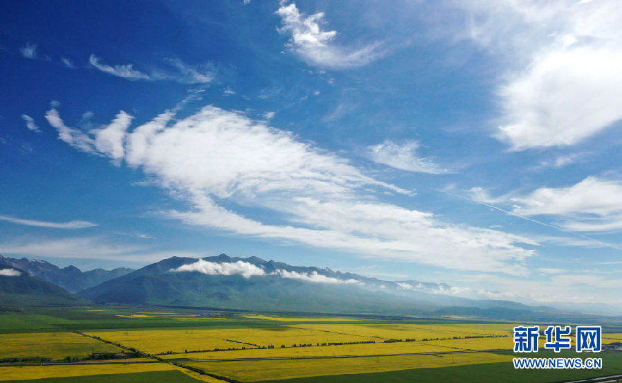 時(shí)下正值高原油菜花競(jìng)相綻放的季節(jié),在青海省海北藏族自治州門源回族自治縣,金黃色的油菜花在高原藍(lán)天和云霧映襯下形成一幅壯麗畫卷,吸引游客前來(lái)觀賞。