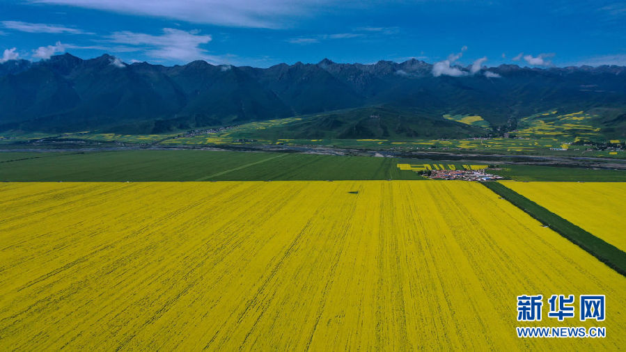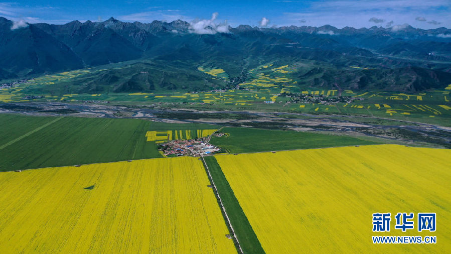 這是7月22日拍攝的門源回族自治縣的油菜花田(無(wú)人機(jī)照片)。新華社記者 吳剛 攝