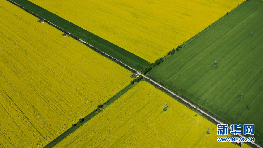 這是7月23日拍攝的門源回族自治縣境內(nèi)的油菜花(無(wú)人機(jī)照片)。新華社記者 吳剛 攝