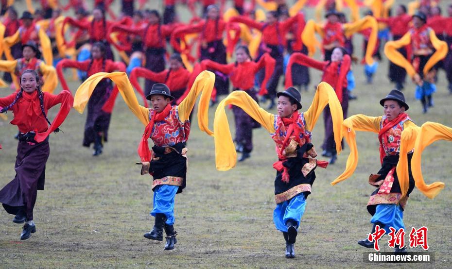 圖為毛埡草原上孩子們展示理塘藏戲。 劉忠俊 攝