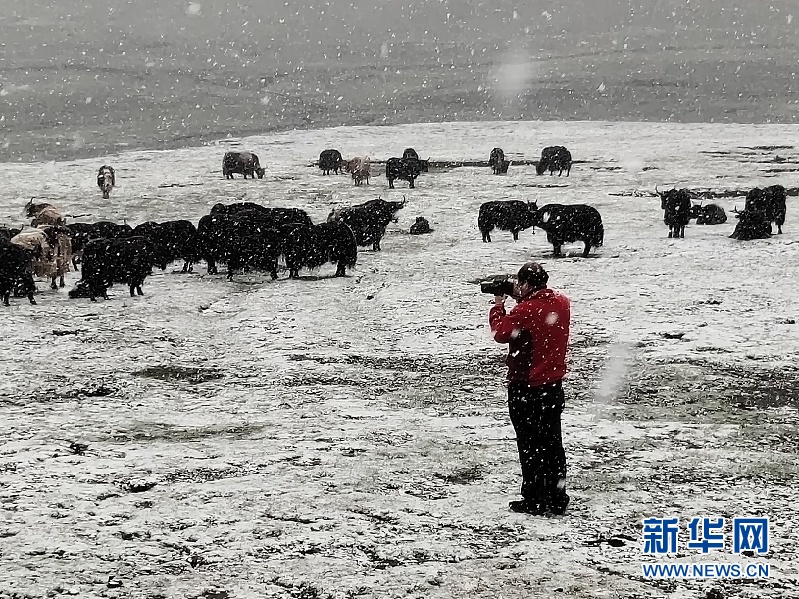 趙新全在青海省玉樹藏族自治州曲麻萊縣拍攝牦牛影像資料(2019年6月28日手機(jī)拍攝)。 新華社發(fā)