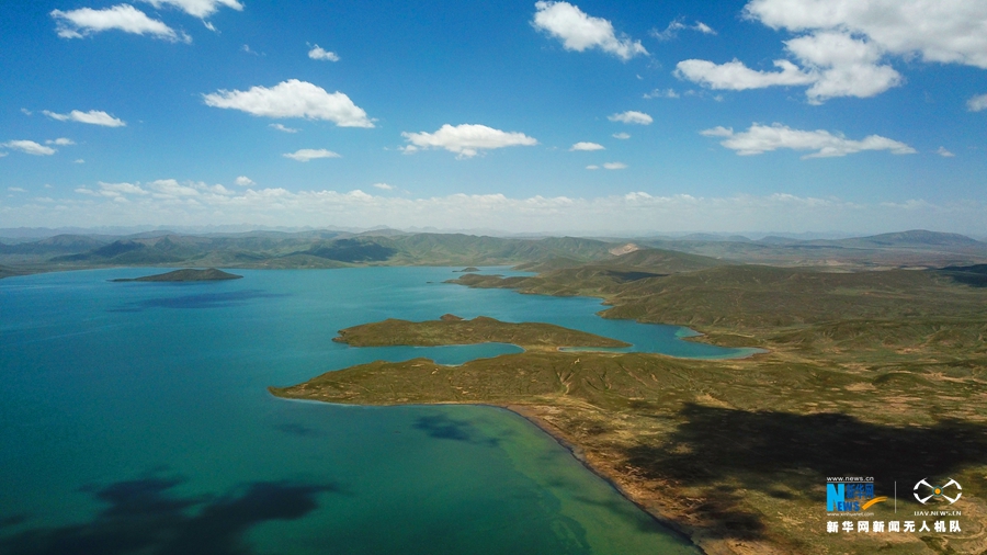 素有“千湖之縣”的瑪多縣境內(nèi)的湖泊。(航拍圖新華網(wǎng) 宋忠勇 攝)
