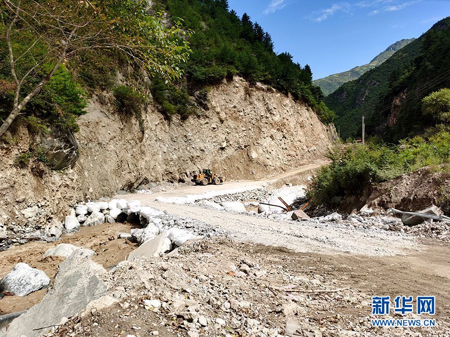 9月2日,搶險人員正在通往舟曲縣曲告納鎮(zhèn)茶坪村的道路上開展轉(zhuǎn)運砂石料作業(yè)。新華網(wǎng)發(fā)(王昭堃 攝)