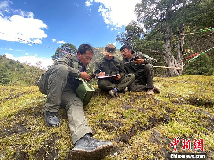 圖為9月9日,管護(hù)員們記錄巡護(hù)監(jiān)測(cè)情況。 中新社記者 李江寧 攝
