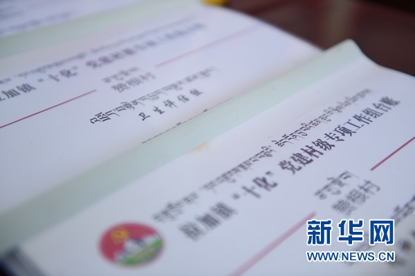 瑪沁縣拉加鎮(zhèn)贊根村“十化”黨建專項工作組臺帳。新華網(wǎng) 潘彬彬 攝