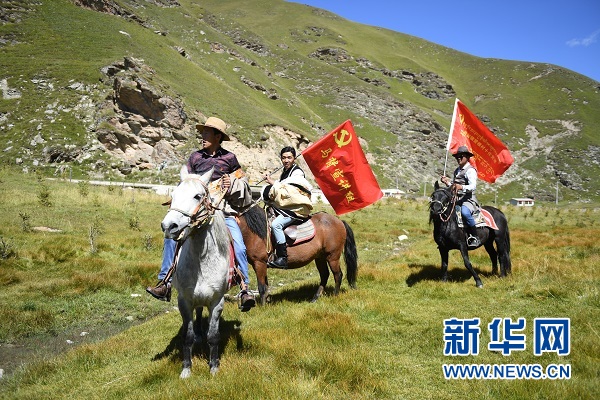 瑪沁縣拉加鎮(zhèn)贊根村的“馬背宣傳隊”。新華網(wǎng) 潘彬彬 攝