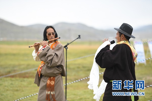 瑪沁縣大武鄉(xiāng)格多村的文藝隊表演。新華網(wǎng) 潘彬彬 攝