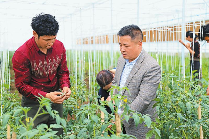 捧著種出的西紅柿,旦真貢(右)笑逐顏開。