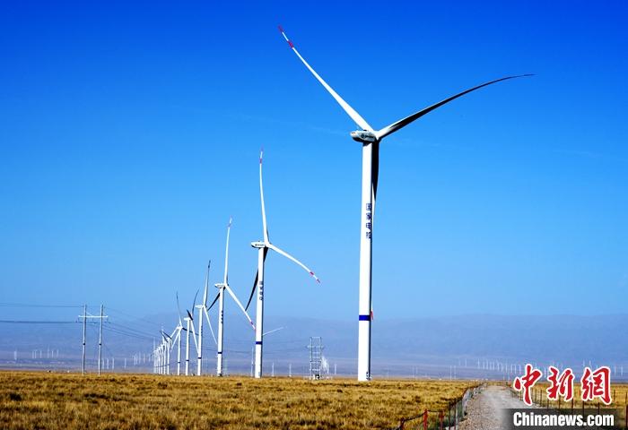 驅(qū)車近3小時后,中新社記者站在青海省海南藏族自治州“青豫特高壓外送基地”電源配置項目1300兆瓦風電場,放眼望去,一臺臺矗立的風機綿延數(shù)百公里。