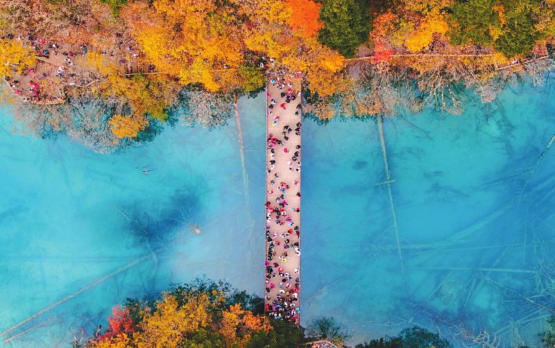 各地游客走進(jìn)九寨溝景區(qū)游覽。蘇楊 攝