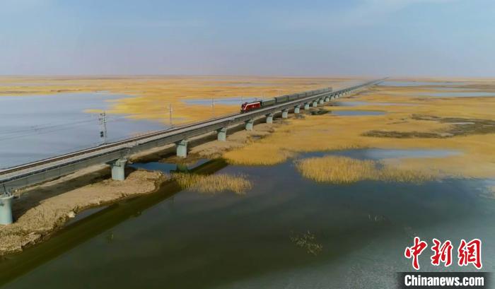 列車經(jīng)過(guò)臺(tái)特瑪湖特大橋。若羌縣融媒體中心供圖
