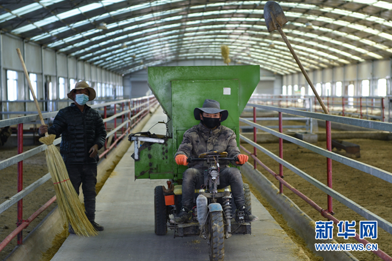 天氣轉(zhuǎn)寒,一大早,澤本太來(lái)到牛棚里打掃衛(wèi)生,添加飼草。29歲的澤本太是金山生態(tài)畜牧業(yè)專業(yè)合作社的一名放牧員,每天操心著牧場(chǎng)里的數(shù)百頭牛羊。而在一年前,他還是一個(gè)靠天吃飯的“放羊娃”。