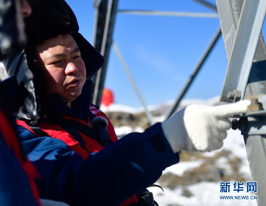 1月21日,國家電網(wǎng)西寧供電公司輸電運(yùn)檢中心運(yùn)檢人員在查看線路覆冰情況。新華社記者 張龍 攝