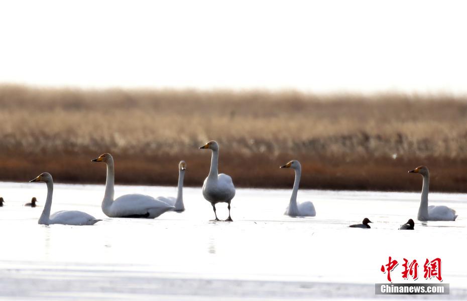 四川若爾蓋:近百只“白色精靈”棲息越冬