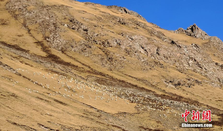 位于青海省南部的三江源區(qū)域,包括長(zhǎng)江源(可可西里)、黃河源、瀾滄江源,是青藏高原生態(tài)系統(tǒng)的典型代表,分布雪豹、藏羚羊、野牦牛、黑頸鶴等珍稀物種,被稱(chēng)“高原野生動(dòng)物王國(guó)”、“高寒生物種質(zhì)資源庫(kù)”。圖為巖羊群。曲麻萊管理處 供圖