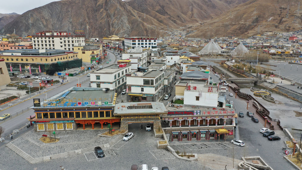 圖為2021年3月10日拍攝的玉樹市一處商業(yè)區(qū)(地震前為結古寺賓館)。