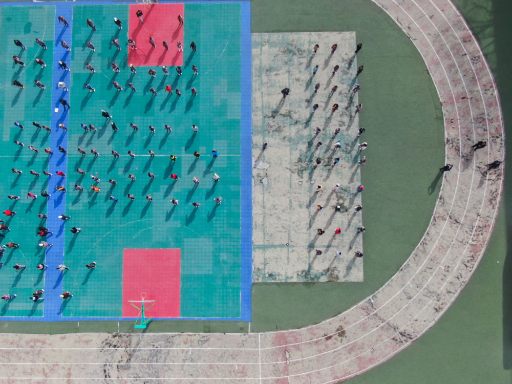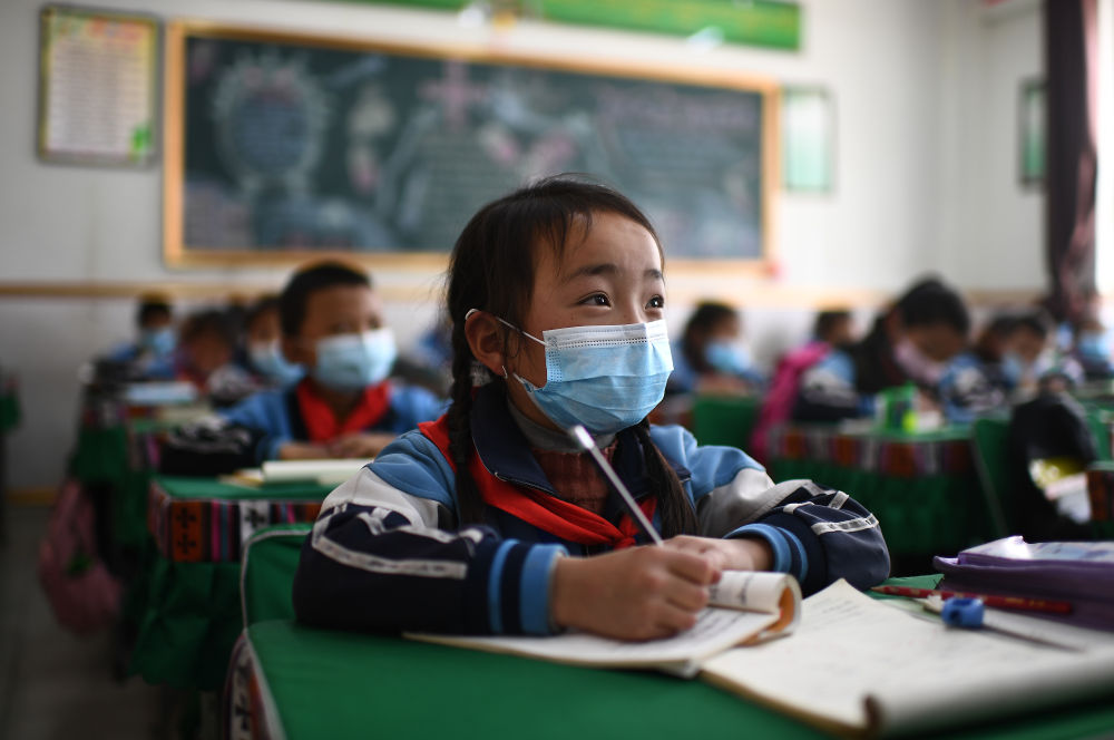 在青海省玉樹藏族自治州八一孤兒學校,學生們在進行課間活動(2020年4月3日攝)。 新華社記者 張龍 攝