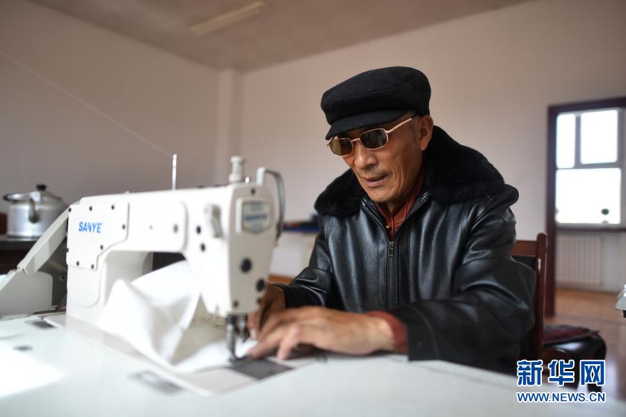 3月14日,在治多縣幸福敬老院手工藝室內,來自治多縣多彩鄉(xiāng)的76歲老人尼松在制作手工藝品。新華社記者 張宏祥 攝