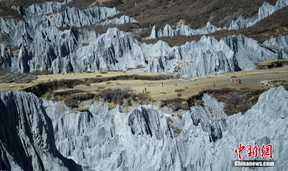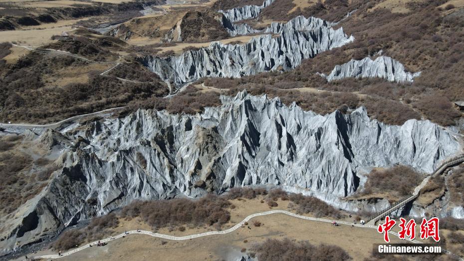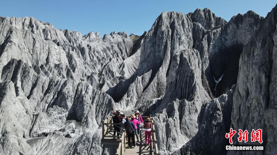 3月24日,四川省甘孜藏族自治州道孚縣八美鎮(zhèn)墨石公園吸引了不少游人前往打卡拍照。海拔約3400米的墨石公園總面積約5平方公里,埋藏于地下的巖土經雨水長年沖刷、風化等,自然形成了千姿百態(tài)的獨特地質景觀。因“八美土石林”含鈣鹽,受空氣濕度影響,干燥季節(jié)呈淺灰、淺藍灰色,濕潤季節(jié)呈蒼墨色。劉忠俊 攝