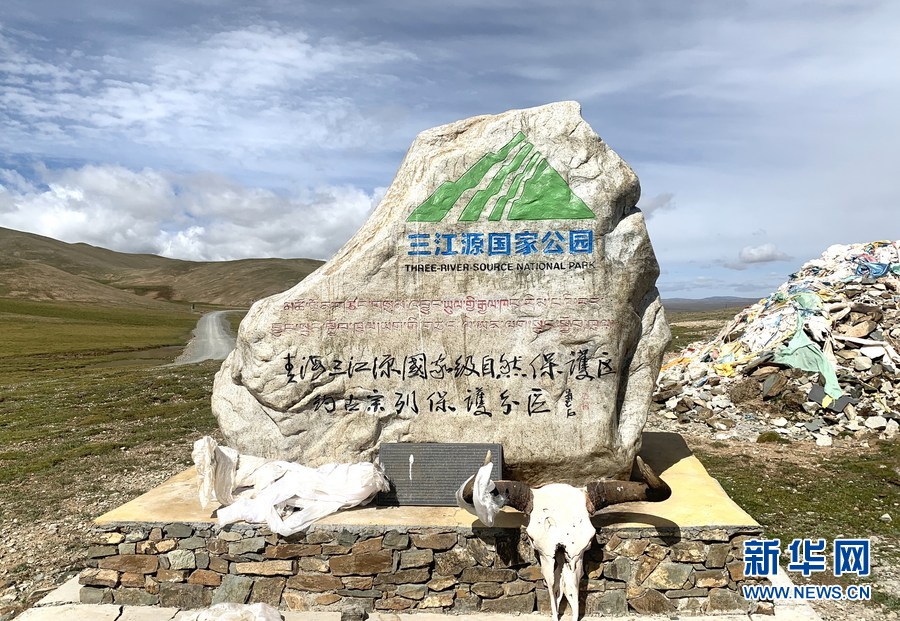 這是位于玉樹州曲麻萊縣境內(nèi)的青海三江源國(guó)家級(jí)自然保護(hù)區(qū)約古宗列保護(hù)分區(qū)紀(jì)念碑。(2020年8月27日攝)新華社記者 李琳海 攝