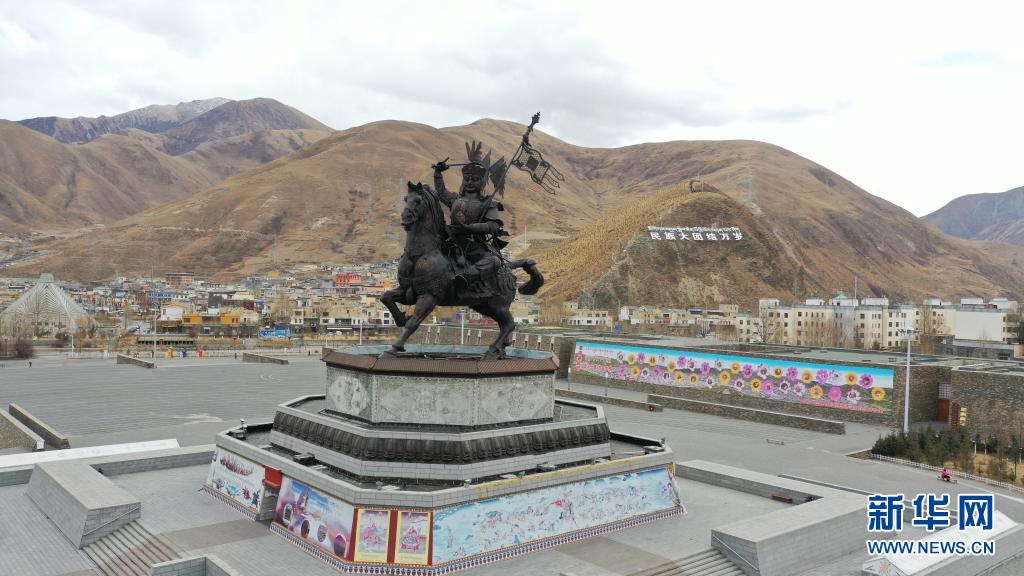 這是青海省玉樹藏族自治州玉樹市格薩爾王廣場(chǎng)(3月10日攝,無(wú)人機(jī)照片)。新華社記者 張宏祥 攝