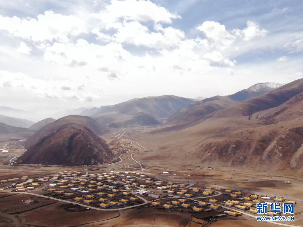 這是青海省玉樹藏族自治州玉樹市甘達(dá)村(4月10日攝,無(wú)人機(jī)照片)。新華社記者 趙玉和 攝
