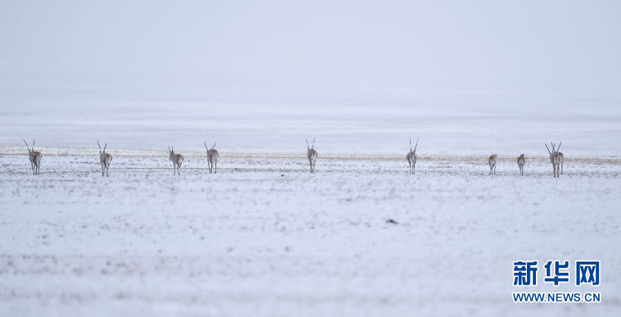 近日,可可西里迎來降雪,大量藏羚羊匯聚在可可西里五道梁地區(qū),踏上遷徙之路。