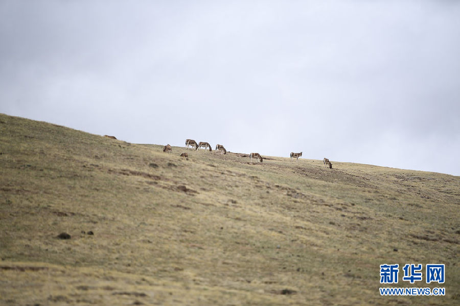 5月25日,一群藏野驢在三江源國家公園黃河源園區(qū)內(nèi)活動。新華社記者 李占軼 攝