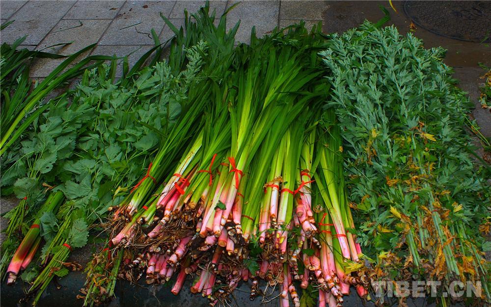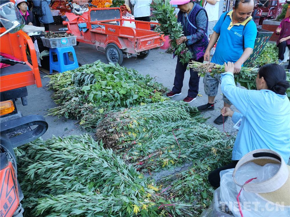 圖為藏族婦女挑選艾葉、菖蒲