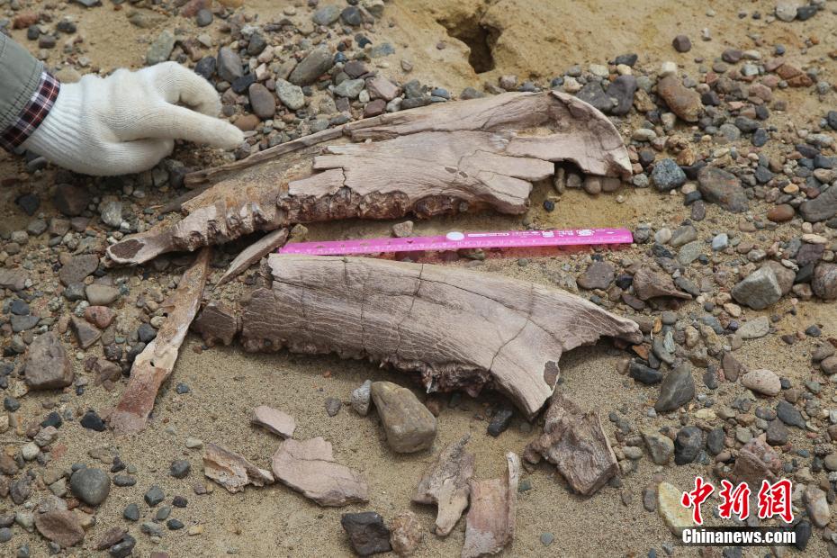 7月10日,從青海省地質(zhì)調(diào)查院獲悉,由該院承擔的“青海省古生物化石產(chǎn)地示范調(diào)查”項目,在青海省內(nèi)發(fā)現(xiàn)疊層石、古脊椎動物和魚類3處具有較高科學研究價值的化石產(chǎn)地。圖為犀牛下頜骨。 保廣普 攝