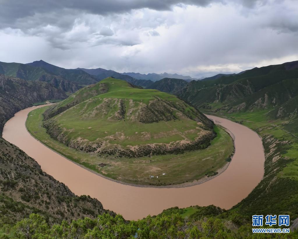 這是7月23日在玉樹(shù)藏族自治州治多縣葉青村拍攝的“萬(wàn)里長(zhǎng)江第一灣”。新華社記者 呂雪莉 攝