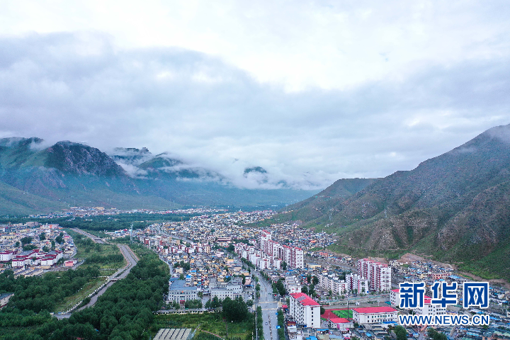 這是2021年8月7日拍攝的玉樹市城區(qū)(無人機照片) 新華社記者 吳剛 攝