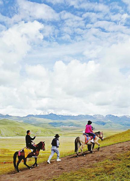 在塔公草原騎馬,是游客最為向往的事情。四川日?qǐng)?bào)全媒體記者 華小峰 攝