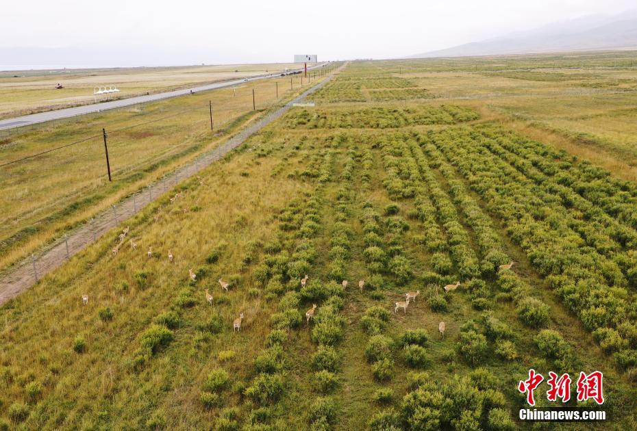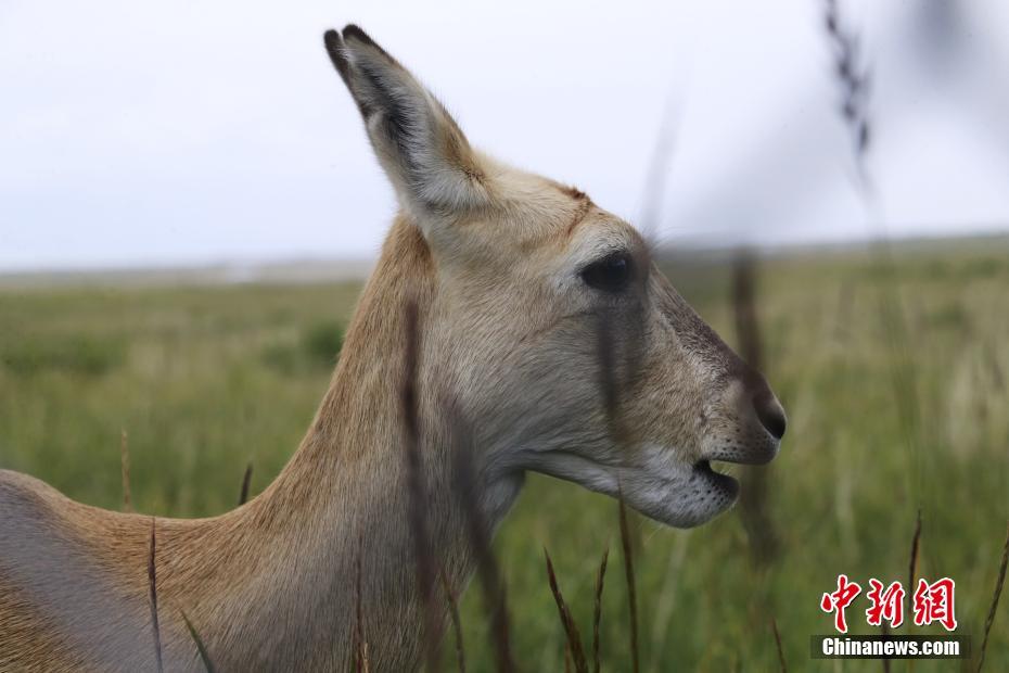 9月27日,在青海省海南藏族自治州共和縣青海湖國家級自然保護區(qū)南岸保護站,普氏原羚在草場內(nèi)進食。 中新社記者 馬銘言 攝