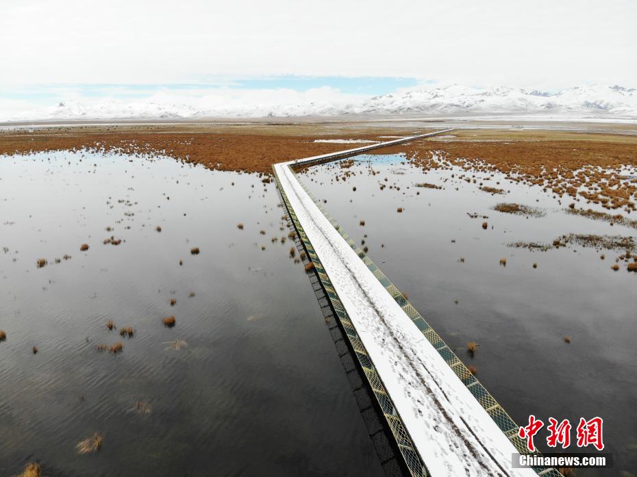 10月20日,四川省阿壩州若爾蓋大草原雪后銀裝素裹。從19日晚間起,若爾蓋縣境內(nèi)迎來(lái)降雪,花湖生態(tài)旅游區(qū)被皚皚白雪覆蓋,美輪美奐?;ê屈S河(若爾蓋段)的重要水源涵養(yǎng)地,也是若爾蓋濕地國(guó)家級(jí)自然保護(hù)區(qū)的“實(shí)驗(yàn)區(qū)”的一部分,自保護(hù)工作開(kāi)展以來(lái),花湖自然水位提高30厘米,濕地湖泊面積從原來(lái)的215公頃擴(kuò)大到650公頃,恢復(fù)湖泊周邊半沼澤和干沼澤892公頃。