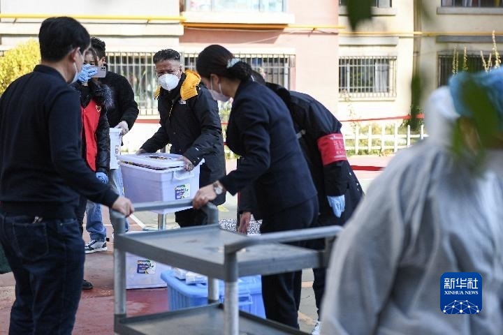 10月31日,羅宗周正在為西寧勝利路一社區(qū)核酸采樣點(diǎn)送愛心餐。新華社記者 吳剛 攝