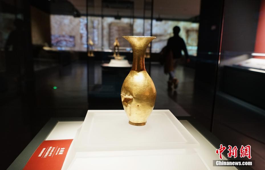 11月29日,位于青海省西寧市的青海省博物館展出從該省海西州都蘭縣熱水墓群出土的金胡瓶。當(dāng)日,青海省博物館經(jīng)一年半升級改造后開館并舉辦“1+3”主題展覽,160件藏品首次亮相。該展覽以青海歷史文物為主,青海非物質(zhì)文化遺產(chǎn)、考古成果、百年革命文物為輔,多角度展現(xiàn)地域歷史及民族文化。據(jù)了解,升級后的博物館上展文物1331件(套)/2405件,其中一級文物191件,珍貴文物248件(套),上展文物體量為青藏高原最大。 中新社記者 馬銘言 攝