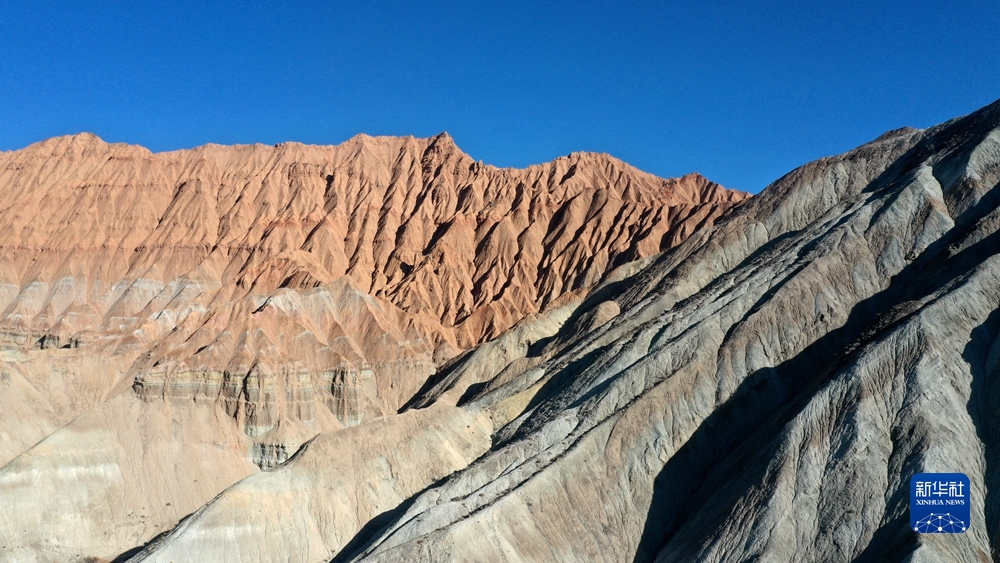 這是12月24日在貴德縣拍攝的丹霞地貌(無(wú)人機(jī)照片)。新華社記者 陳杰 攝