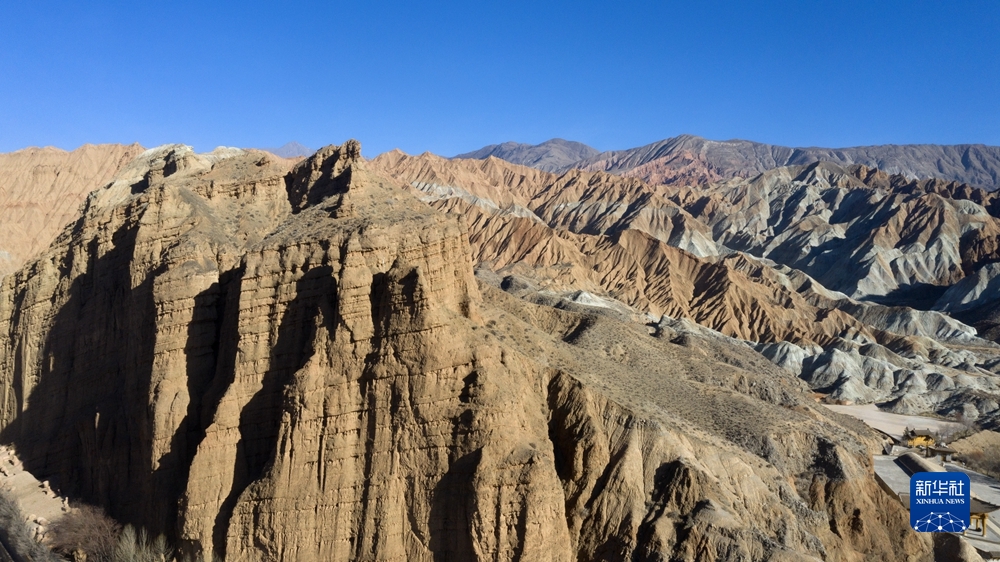 冬日,在青海省海南藏族自治州貴德縣,多彩的丹霞地貌在陽(yáng)光照耀下形成一幅美麗畫(huà)卷。