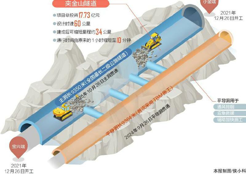 夾金山隧道全長(zhǎng)9.35公里,建設(shè)工期4年,設(shè)計(jì)時(shí)速60公里,進(jìn)出口在海拔3000米左右,比現(xiàn)在的埡口路段降低1000米,可常年全天候通行,解決了夾金山越嶺路段冬季長(zhǎng)期管制通行的問(wèn)題。隧道建成后,將節(jié)約翻越夾金山里程34公里,通行時(shí)間將由現(xiàn)在的最快1小時(shí)縮短為10分鐘。