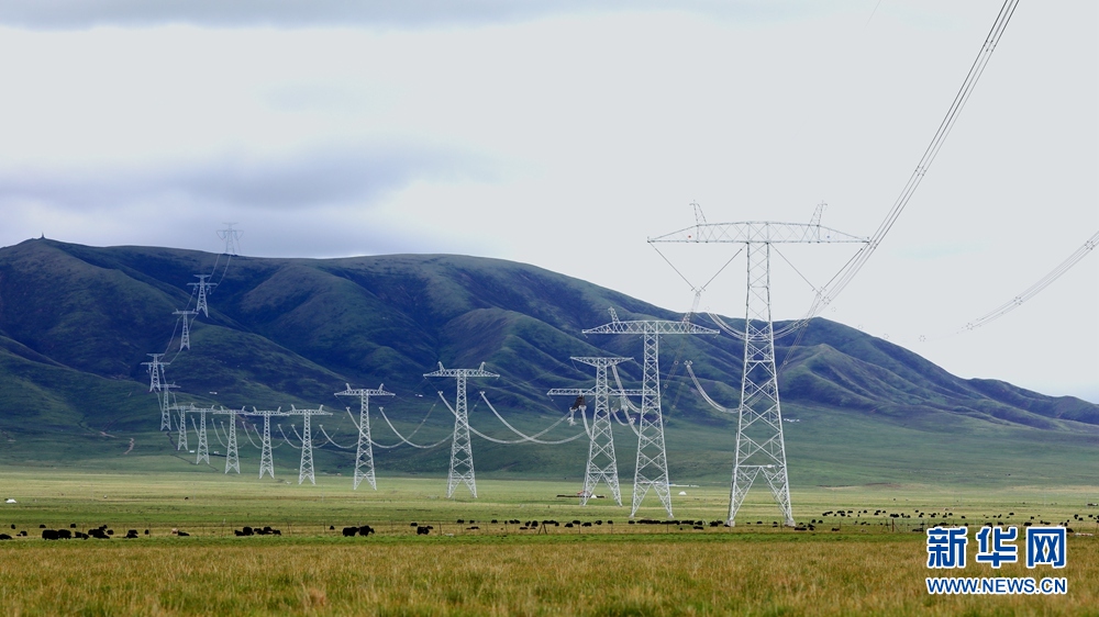青海省黃南藏族自治州河南蒙古族自治縣拍攝的青豫特高壓直流工程。新華社發(fā) (謝莉蓉 攝)