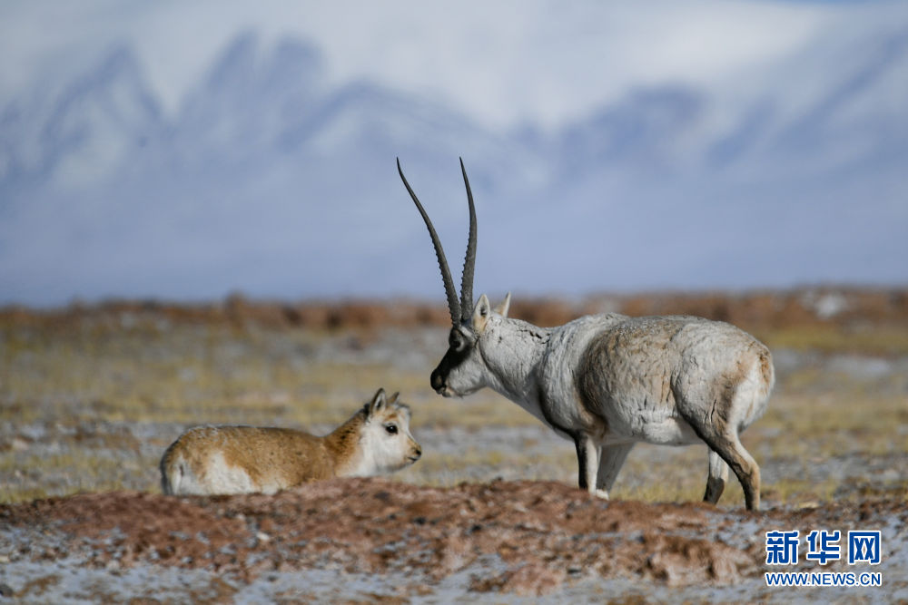 這是在可可西里拍攝的藏羚羊(1月20日攝)。新華社 宋忠勇 攝